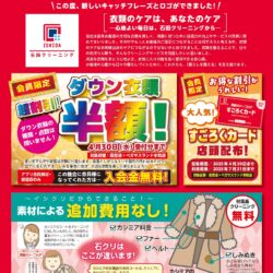 2025年4月6日 お知らせ 4月14日(月)石田の日は、会員限定SALE‼️ 【4月14日(月)石田の日は、会員限定SALE‼️】 ✨クリーニング5点以上で《20%OFF!》✨ ※特殊品・布団類・加工品は割引対象外です※他割引との併用はできま […]