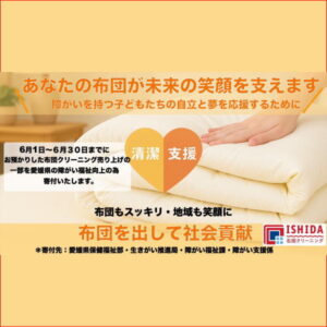 6月中は、布団クリーニング売上の一部を愛媛県の障がい福祉支援へ寄付します。