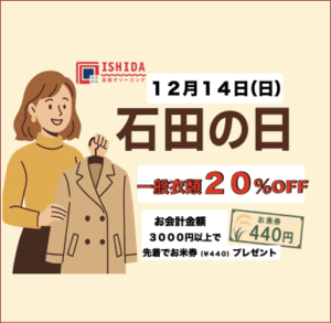 このお得な期間に、ぜひ石田クリーニングをご利用ください♪