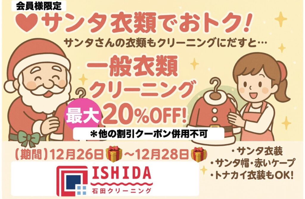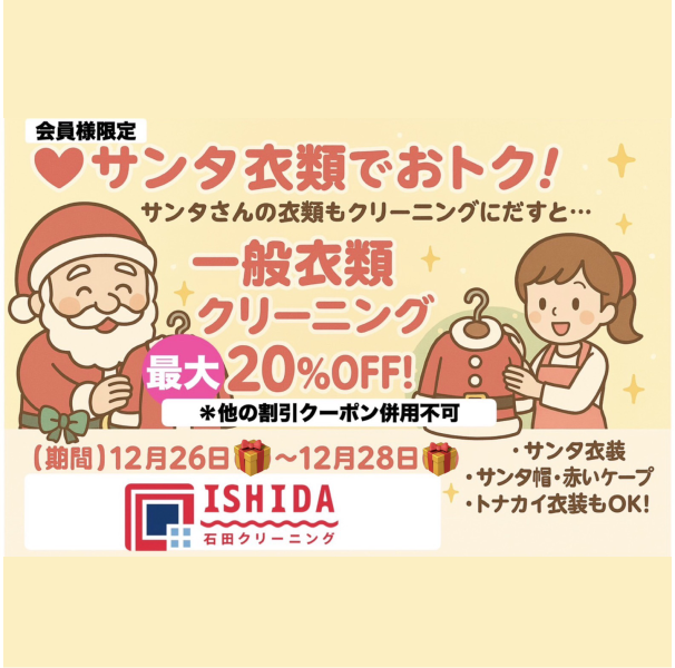 一緒に持参の一般衣類クリーニングが最大20%OFF!