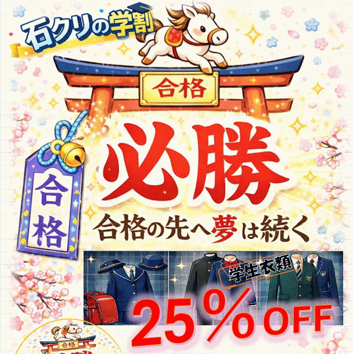 期間中、学生服のクリーニングをご利用いただいた受験生様に、先着で合格祈願ステッカーをプレゼントいたします。