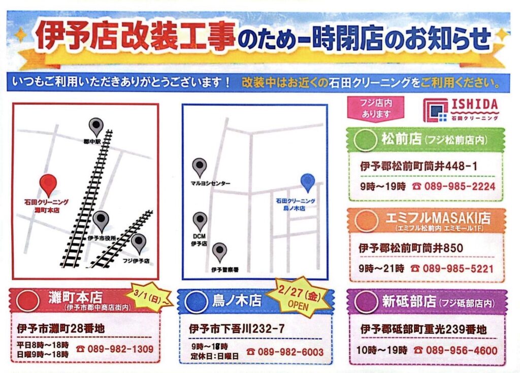 伊予店 一時閉店のお知らせ