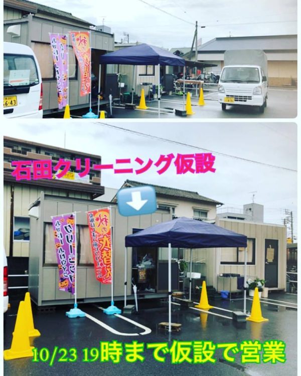 2017年10月18日 ブログ~石クリってこんな会社です♪~ 松前店 仮設店舗で営業中! 石田クリーニングフジ松前店です! 10/16〜23までフジ松前店内駐車場の仮設店舗で営業しています。 毎日雨☔️が続いていますね…💦移設でご迷惑をおかけ致しますが、10/31のリニューアルオープンをお楽しみに❤️ ちなみに、前店舗のプレハブはもう取り壊されてます😆💦お客様、のぼりを見て来店されてます。ぜひぜひ、ハッピーハロウィンクリーニング🎃👻を目印にお越し下さいませ。 (10/24〜30は休業します。お早めのお引き取りなど、ご協力お願いします)…